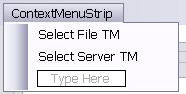 - contextMenuTm: a context menu that is opened through the Select TM button. This menu features the options Select File TM and Select Server TM for selecting either type of translation memory.