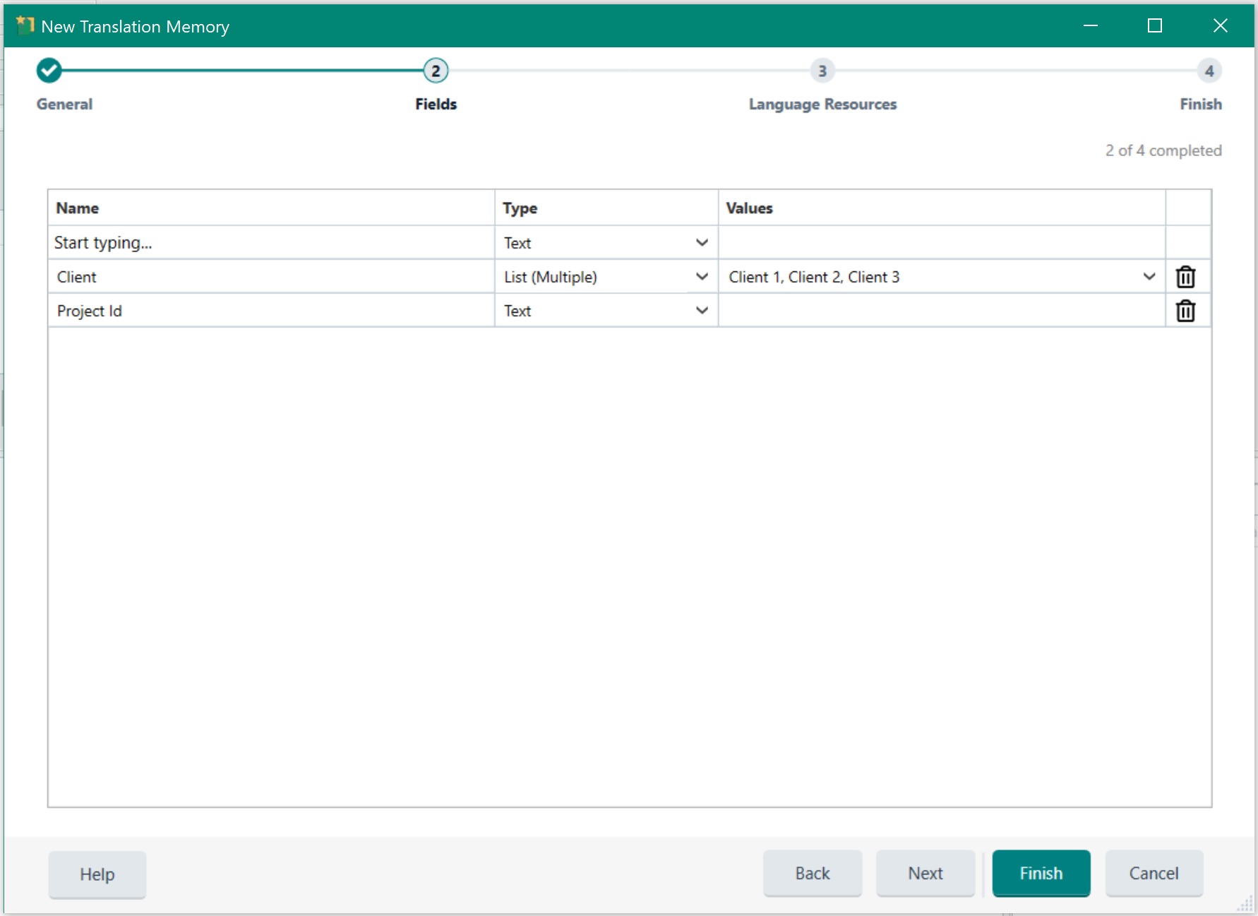 A translation memory can have one or several so-called TM fields. Fields allow users to add descriptive meta information to translation units (TUs) such as a subject (e.g. medical, general, politics, science, etc.), information on the client for whom the translation was made, a project id, etc. This information helps users track, for example, in which context, for which customer, etc. a segment was translated. Based on TM field values users can also define filters, for example, to restrict a lookup operation to only TUs that are related to the subject 'science', or to export a specific subset from a TM, e.g. only TUs that have a specific project id.