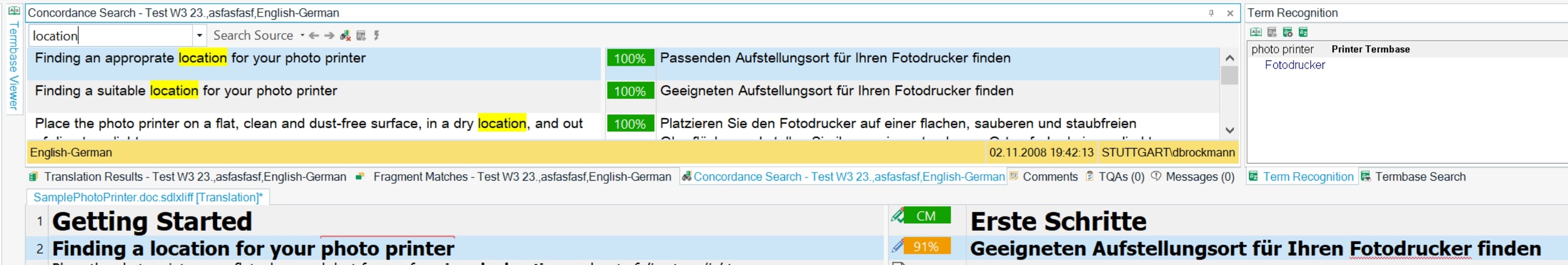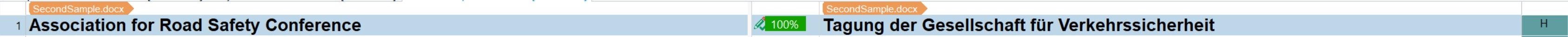- Exact match (100% match): In the TM a segment was found that is identical to the current segment from the document.
