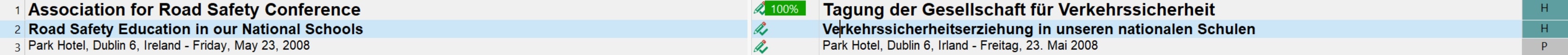 The screenshot below shows a number of sample segments as they are presented in the side-by-side editor of Trados Studio: