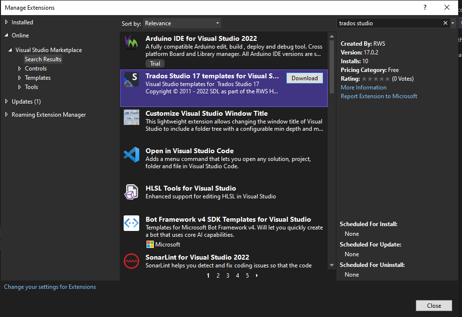 - We also recommend installation of the Trados Studio SDK on your machine. Note that after the installation of Trados Studio SDK, the New Project dialog box from Microsoft Visual Studio 2022 will feature additional project templates specific to the Trados Studio application development.